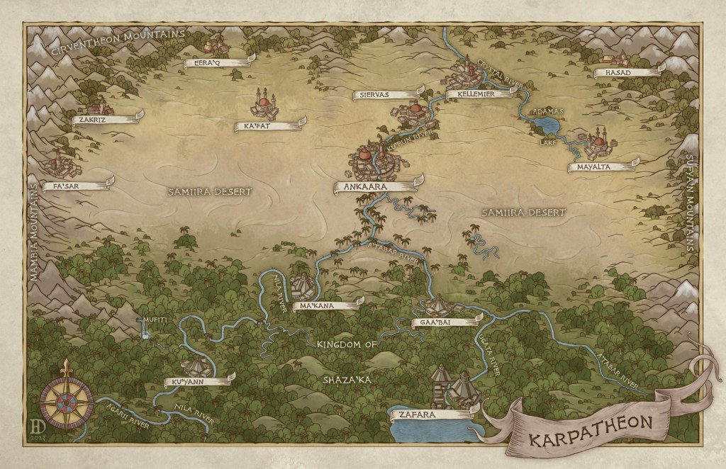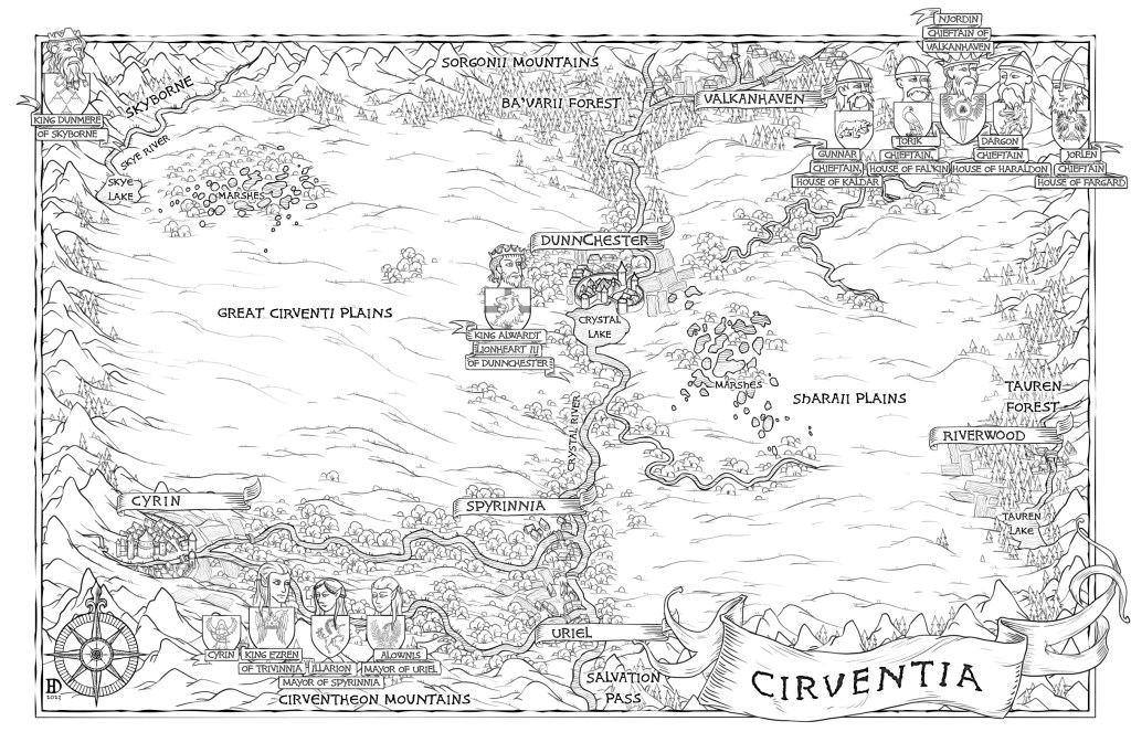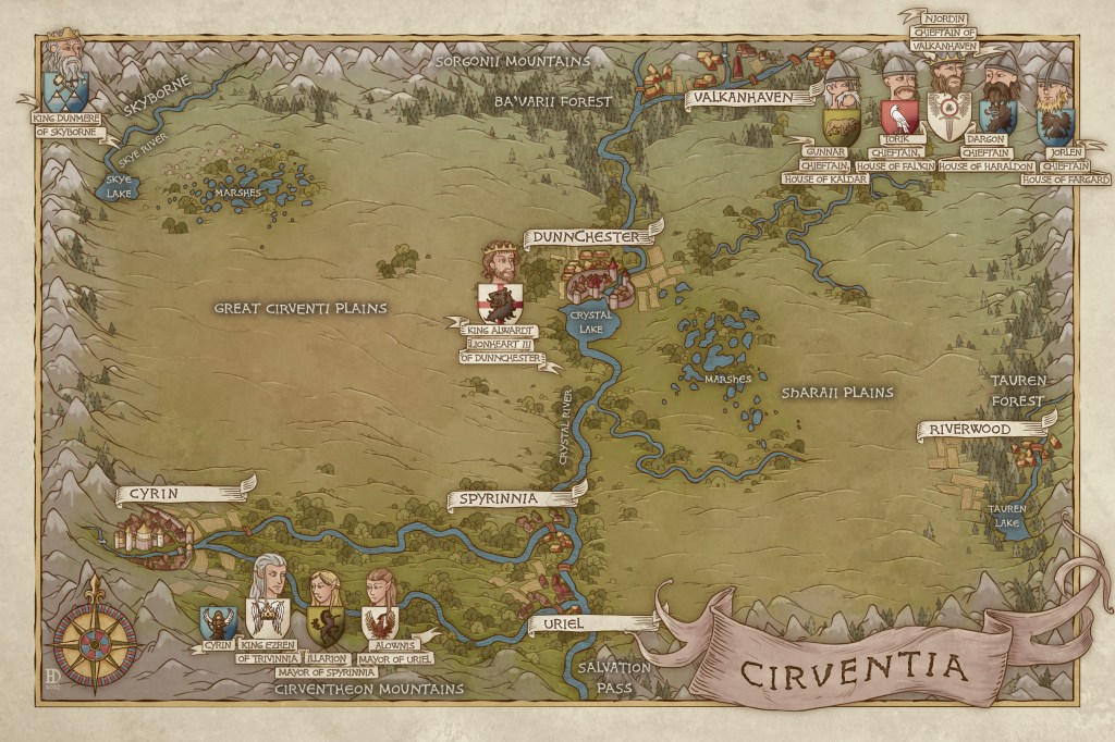 DunnChester near Crystal LakeWinter at Cyrin – elven capital of TrivinniaSpyrinnia (Pre-War)Welcome to SkyborneBattle at CyrinAftermath at DunnChesterJourney through the marshWithin the passages of Skyborne“Wall of the Warrior” at SkyborneValkanhaven – Kaldar villageValkanhaven – outskirts of Kaljavik (capital)DunnChesterPreparing for war at DunnChesterSouth face of Cirventheon Mountains near Salvation PassNear Makanii tribe of the Shazaka EmpireOn the path to MufitiNightlights of the MufitiThe fires within the jungle kingdomThe escape under SiervasRiver villages of the Valkan nationGathering of the three armies